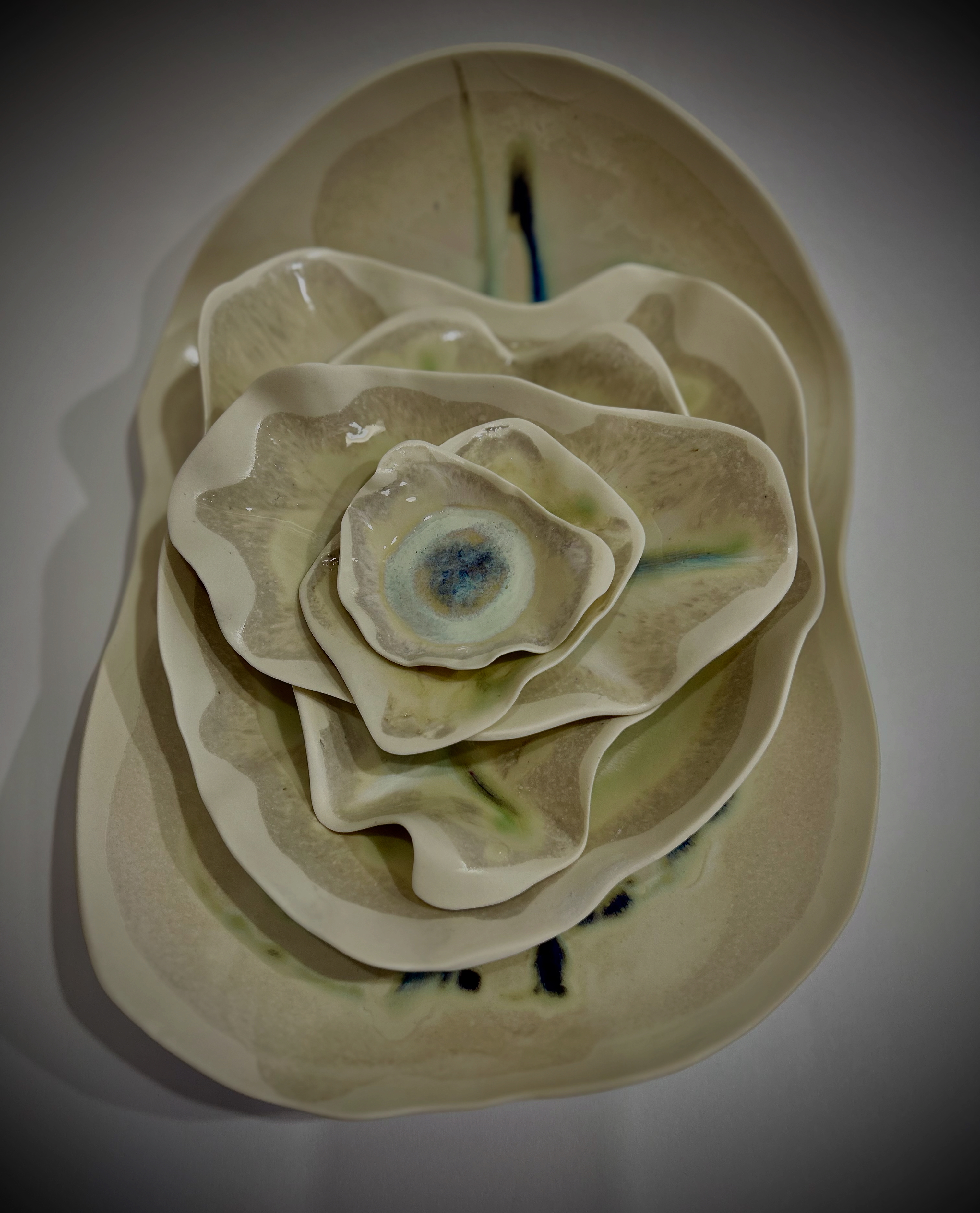 Each set contains six different sized pieces, all the tableware need of one person.